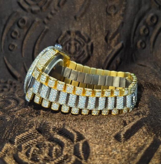 นาฬิกาหรูหราประดับเพชร VVS ขอบหน้าปัดประดับเพชรโมอิสซาไนต์ สายหนัง กระจกแซฟไฟร์ ยอดนิยมสำหรับผู้ชาย ระบบอัตโนมัติ เครื่องกล ตัวเรือนสแตนเลสสตีล 904L