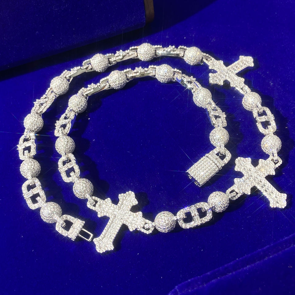 สร้อยคอฮิปฮอปเพชร VVS ดีไซน์สวยหรู เงินแท้ S925 แบบสั่งทำพิเศษ ลายกากบาท แบบ Cuban Link ชุบทอง สำหรับผู้ชาย เหมาะสำหรับงานแต่งงาน