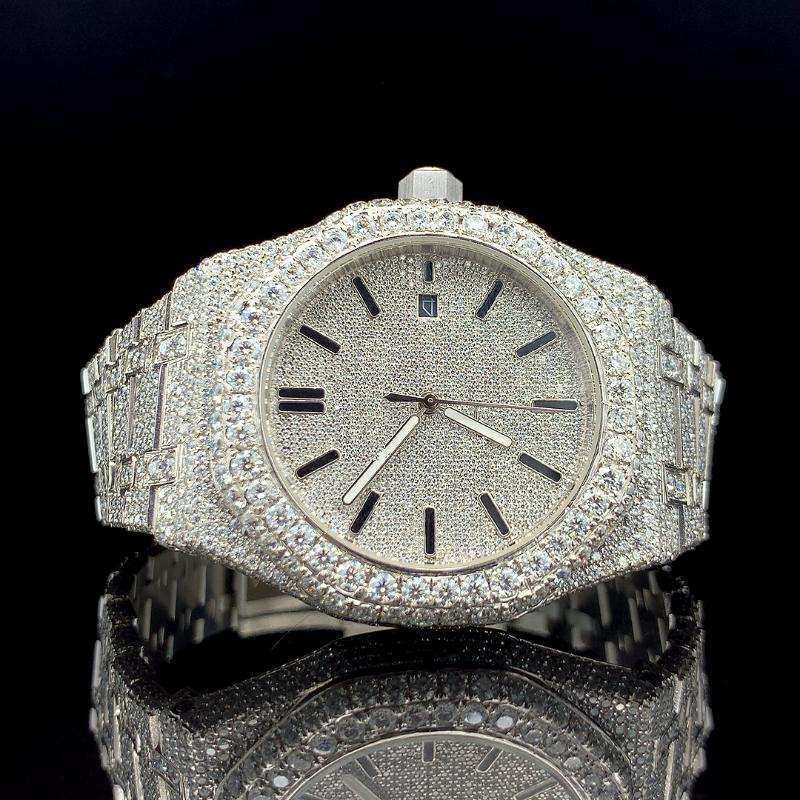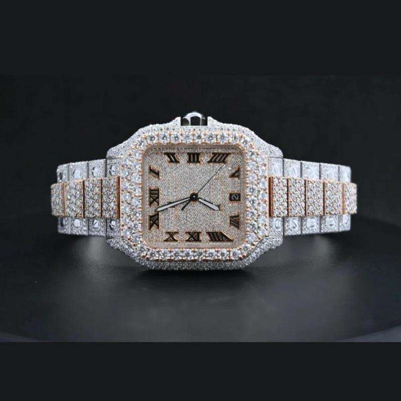 นาฬิกาเพชร VVS ผลิตในห้องปฏิบัติการ นาฬิกาจักรกลเต็มรูปแบบสำหรับผู้ชาย นาฬิกาคุณภาพพรีเมียม ดีไซน์ทันสมัยสำหรับผู้ชาย นาฬิกาเพชร
