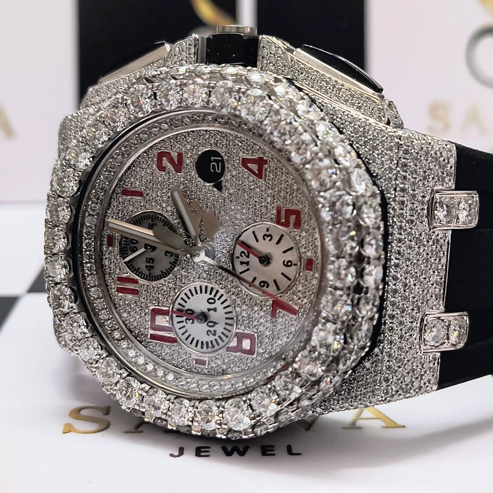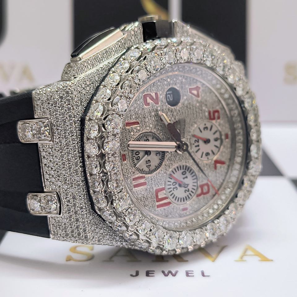 นาฬิกาเพชร VVS นาฬิกากลไกกลไกหรูหราสแตนเลส นาฬิกากลไกเพชร moissanite vvs แบบกําหนดเองสําหรับผู้ชาย