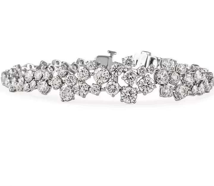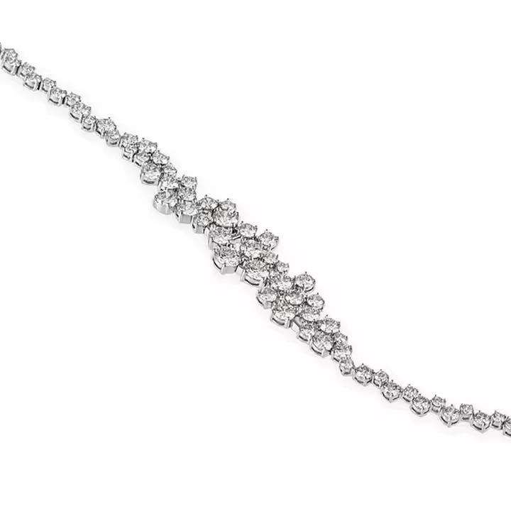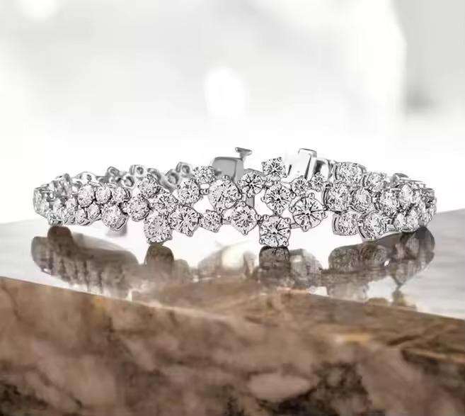 เพชรเม็ดกลม VVS น้ำแข็ง2มม. 3มม. 4มม. 5มม. สร้อยข้อมือเทนนิสสี925สเตอร์ลิงเงินสำหรับผู้หญิง