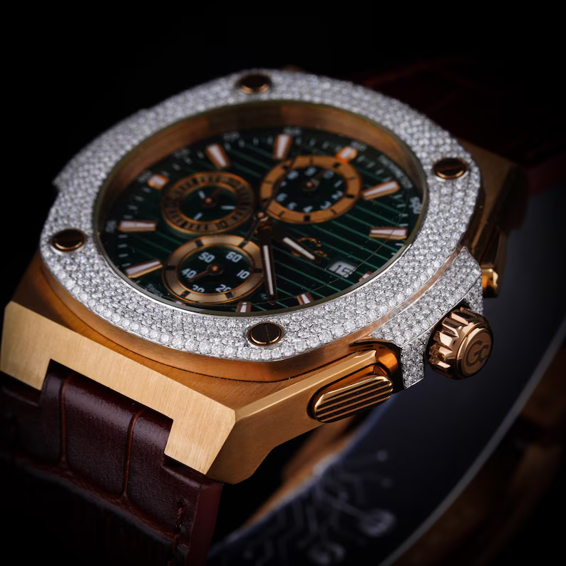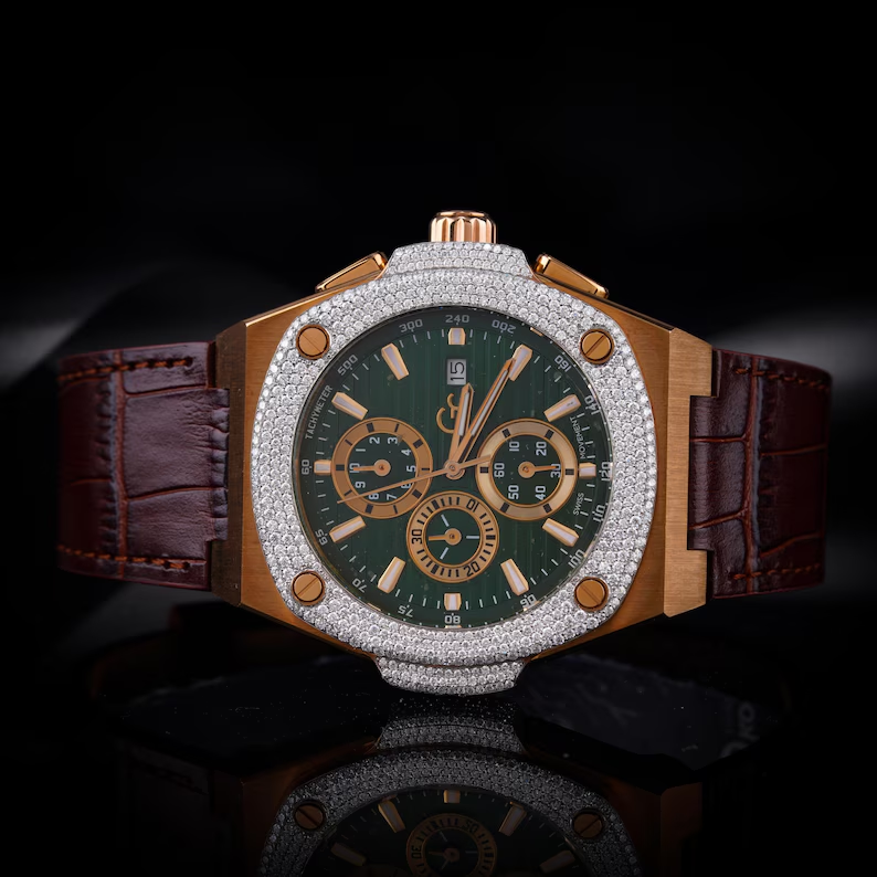 นาฬิกาเพชรหน้าปัดกลม VVS iced OUT Watch หน้าปัดเพชรเครื่องทดสอบเพชรหน้าปัดใหญ่นาฬิกาข้อมือกล