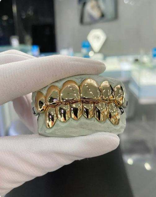 กริลล์ฟันหรูหรา VVS มอยส์ซาไนต์ ทองคำแท้ 14K ขนาด 8x8