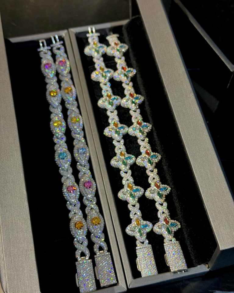 VVS Moissanite 925สร้อยข้อมือเงินสเตอร์ลิง22mm 8นิ้วชุบทองคำขาวเครื่องทดสอบเพชร