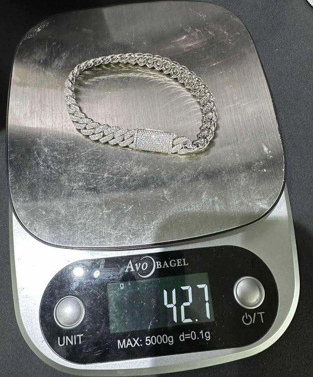 VVS Moissanite 925สร้อยข้อมือเงินสเตอร์ลิง10มม. 8นิ้วชุบทองคำขาว