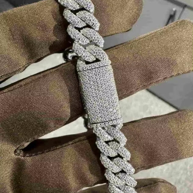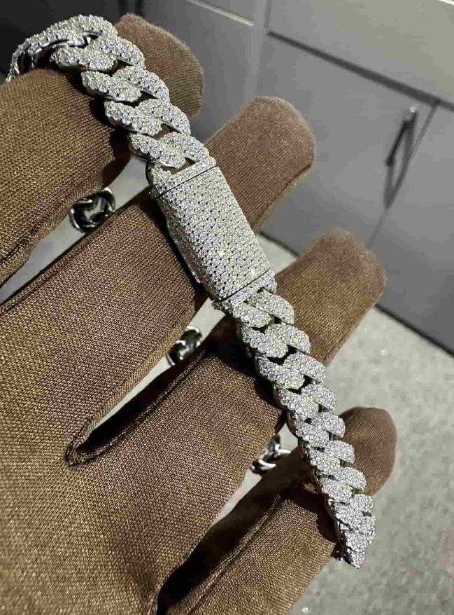 VVS Moissanite 925 Sterling Silver Bracelet 10MM 8 Inches White Gold Plated Fine Pendants & Charms