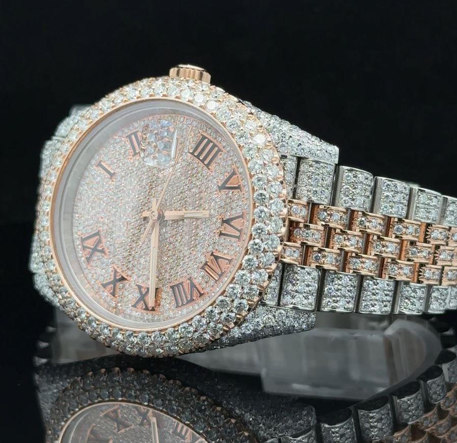 นาฬิกาเพชร VVS Moissanite นาฬิกาข้อมือควอตซ์หรูหราเคลื่อนไหวอัตโนมัติสำหรับเขา/เครื่องประดับฮิปฮอปของเธอ