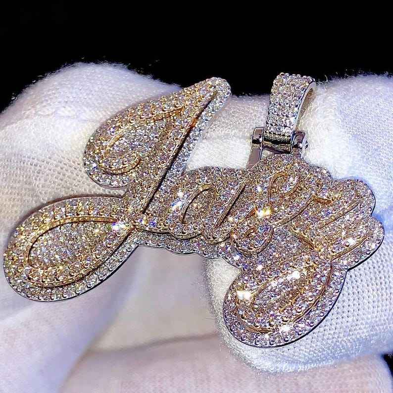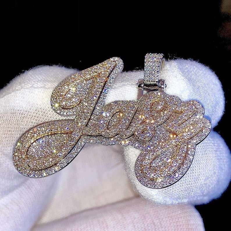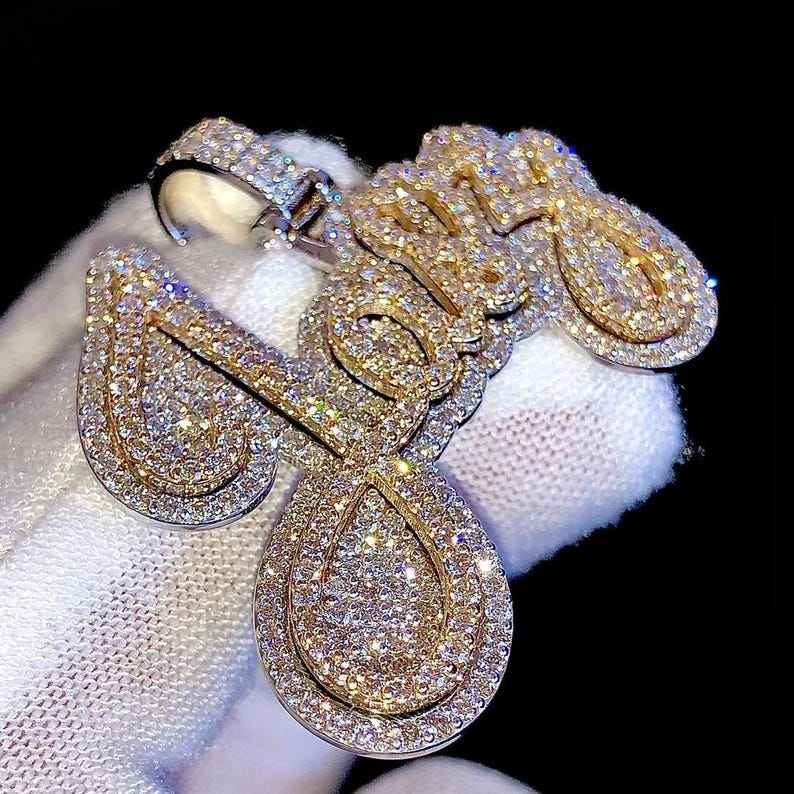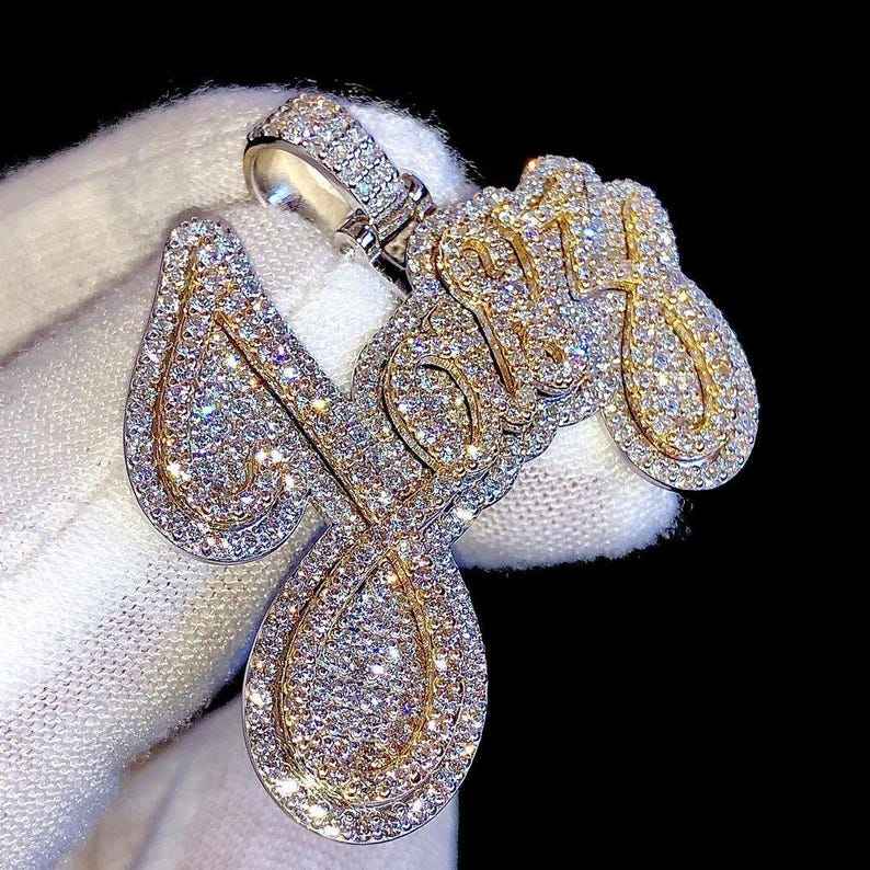 จี้เพชรโมอิสซาไนต์ VVS แบบสั่งทำพิเศษสองชั้น จี้เพชรโมอิสซาไนต์ VVS สองสี จี้ฮิปฮอป จี้เงินแท้ 925 พร้อมอักษรย่อ