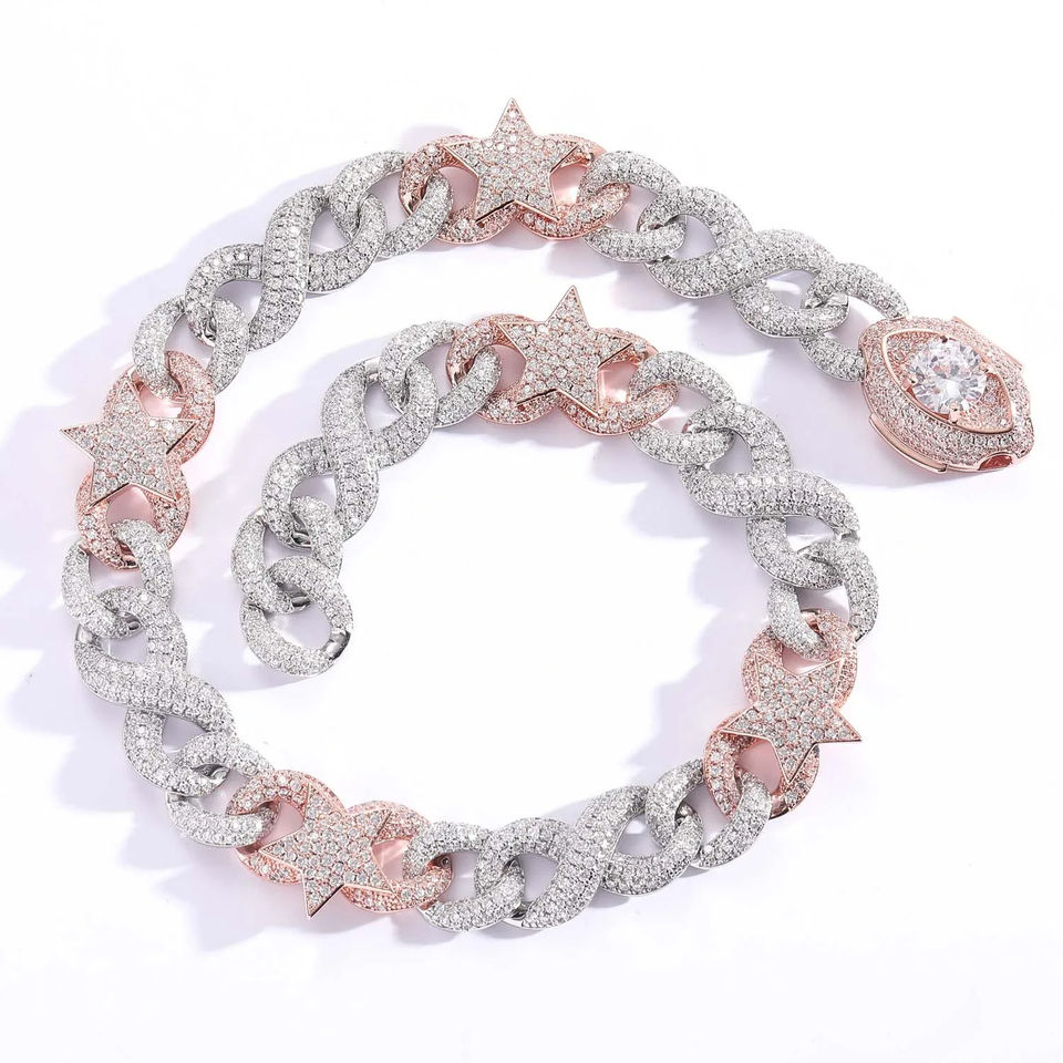 สร้อยคอฮิปฮอปแฟชั่นประดับเพชรโมอิสซาไนต์ VVS เงินแท้ 925 ชุบทองคำขาว 14k และทองคำเหลือง ดีไซน์ดาวแบบคิวบันลิงค์สั่งทำได้