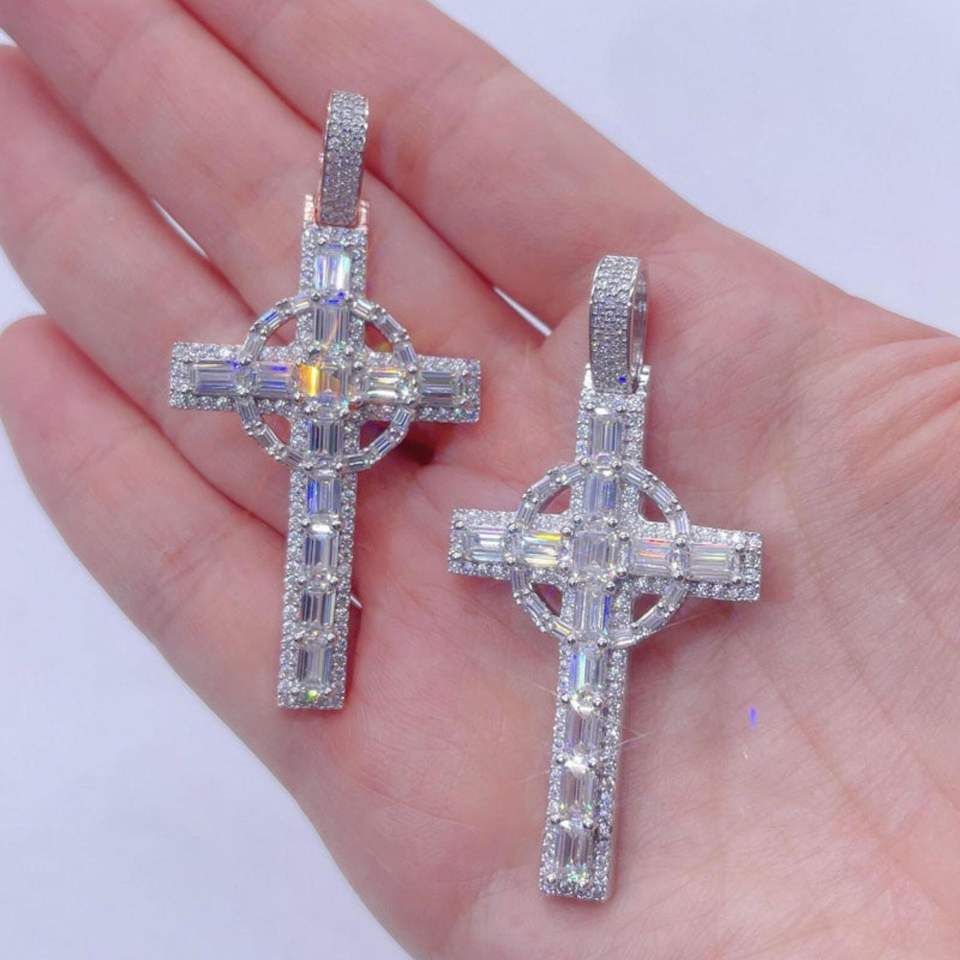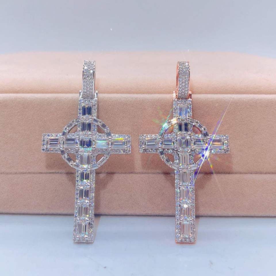 จี้เพชรไขว้ VVS Moissanite-เย็นออกบาแกตต์ตัดเสน่ห์ฮิปฮอป