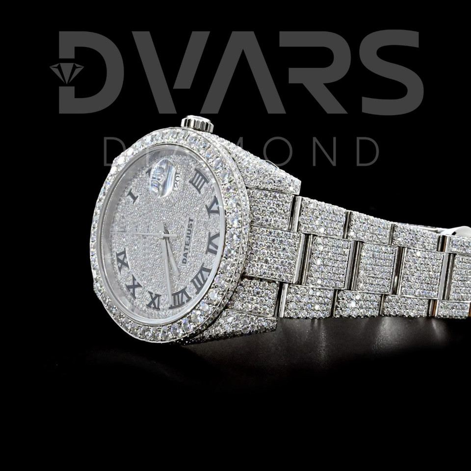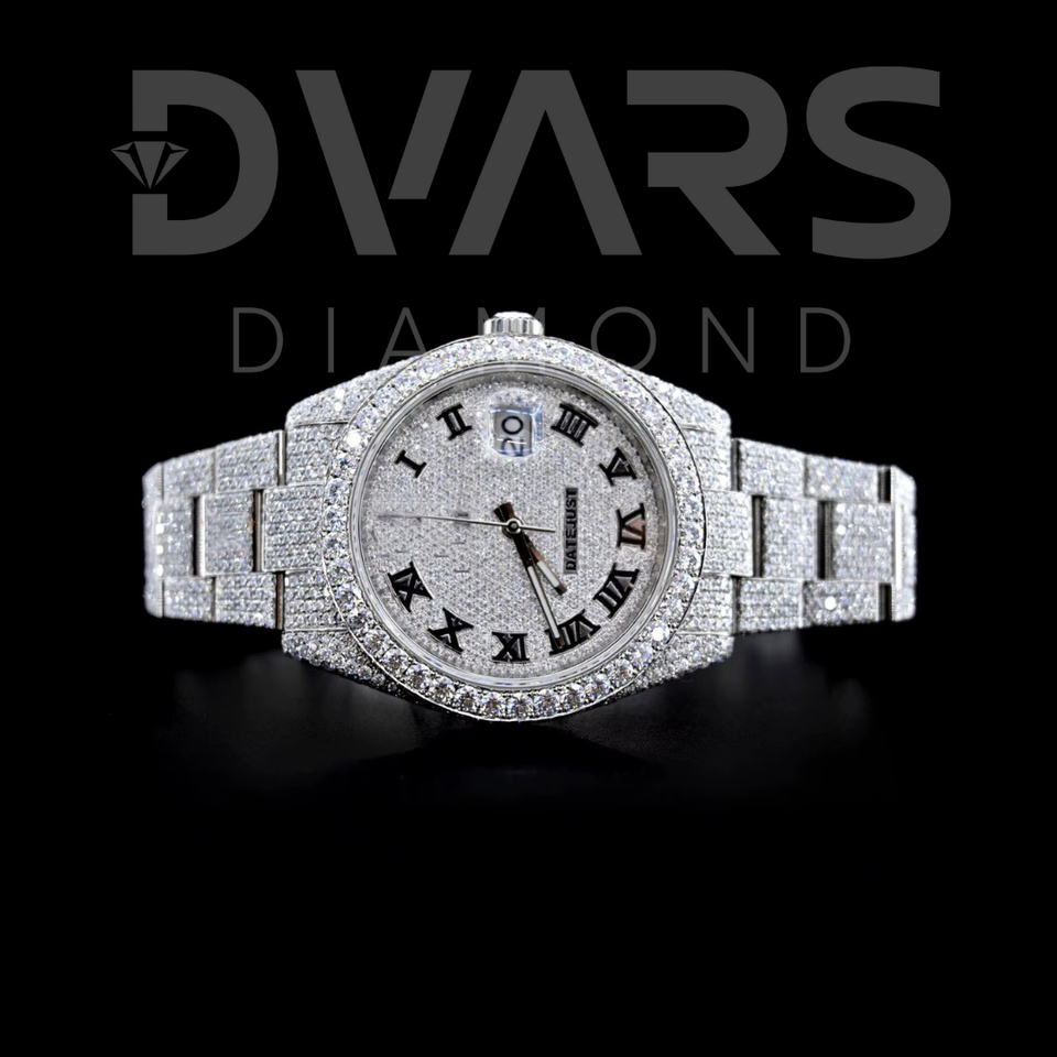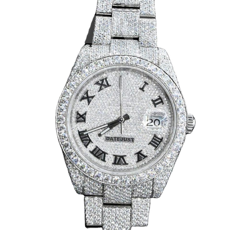เพชร VVS มอยส์ซาไนต์ ประดับเพชรเต็มเรือน นาฬิกาอัตโนมัติเต็มรูปแบบ ตัวเรือนสแตนเลสสตีล หน้าปัดอนาล็อก เครื่อง ETA กระจกสีเหลืองทอง ทองคำขาว สำหรับทั้งชายและหญิง กันน้ำ 3BAR