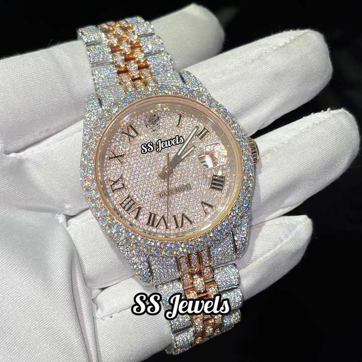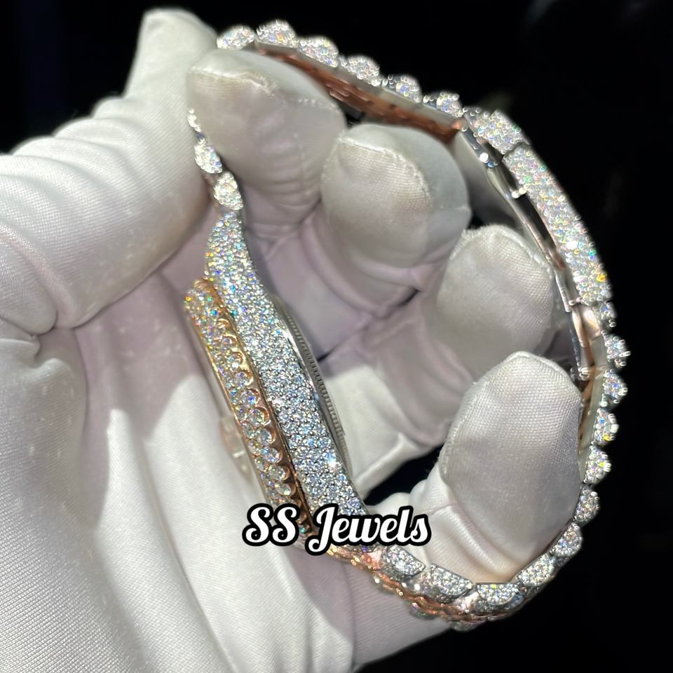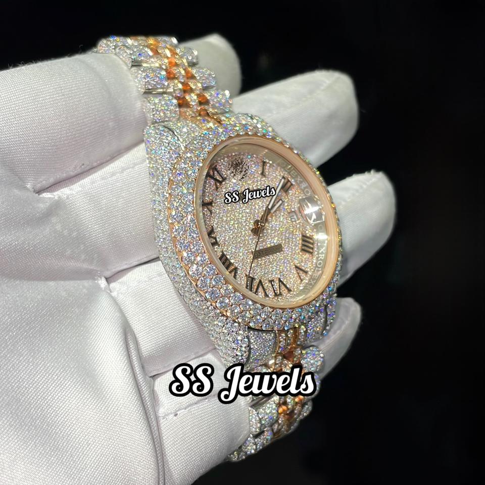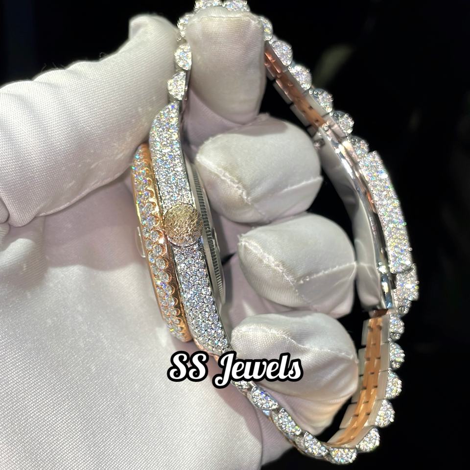 VVS Moissanite นาฬิกาหรูสำหรับผู้ชายประดับเพชรสแตนเลสชุบโรสโกลด์แฮนด์เมดขยับอัตโนมัติแบบญี่ปุ่นขนาด41มม.