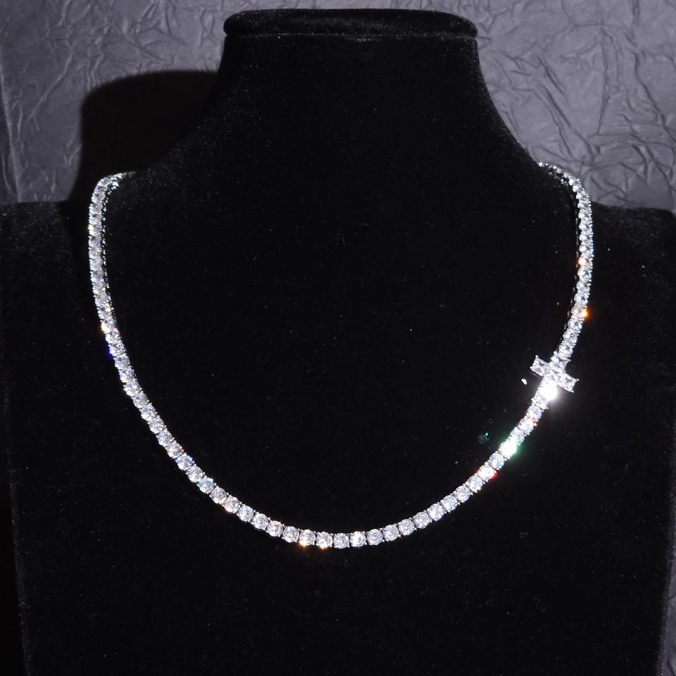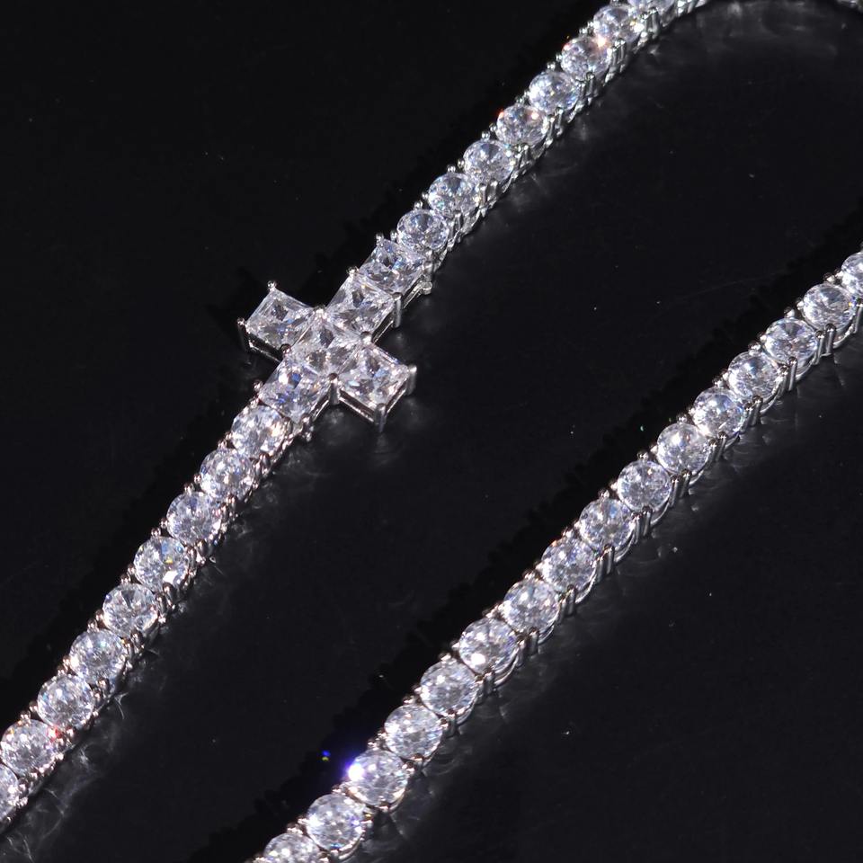 สร้อยคอเทนนิสเพชรโมอิสซาไนต์ VVS เงินแท้ 925 พร้อมจี้กางเขนด้านข้างประดับเพชร สำหรับผู้ชาย ผู้ผลิตเครื่องประดับแฟชั่น