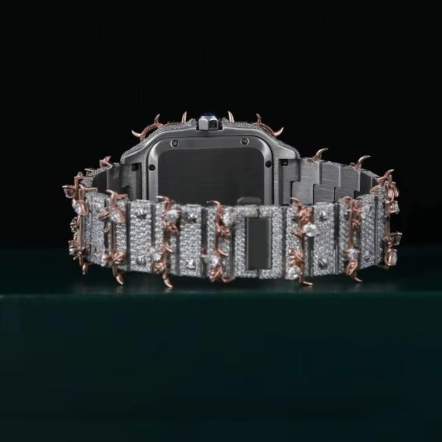 นาฬิกาเพชร VVS มอยส์ซาไนต์ ระบบอัตโนมัติเต็มรูปแบบ ขนาด 41 มม. ตัวเรือนสีโรสโกลด์และไวท์โทน ประดับเพชรทรงหนาม