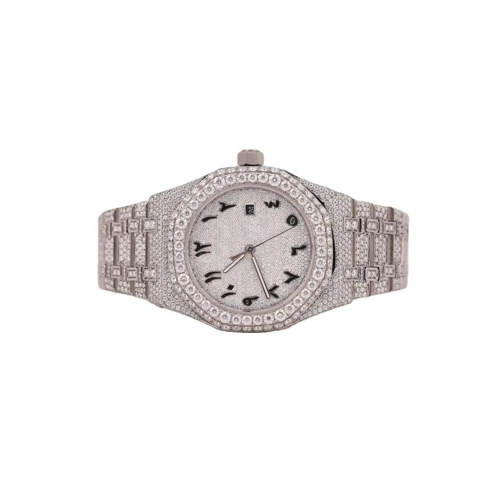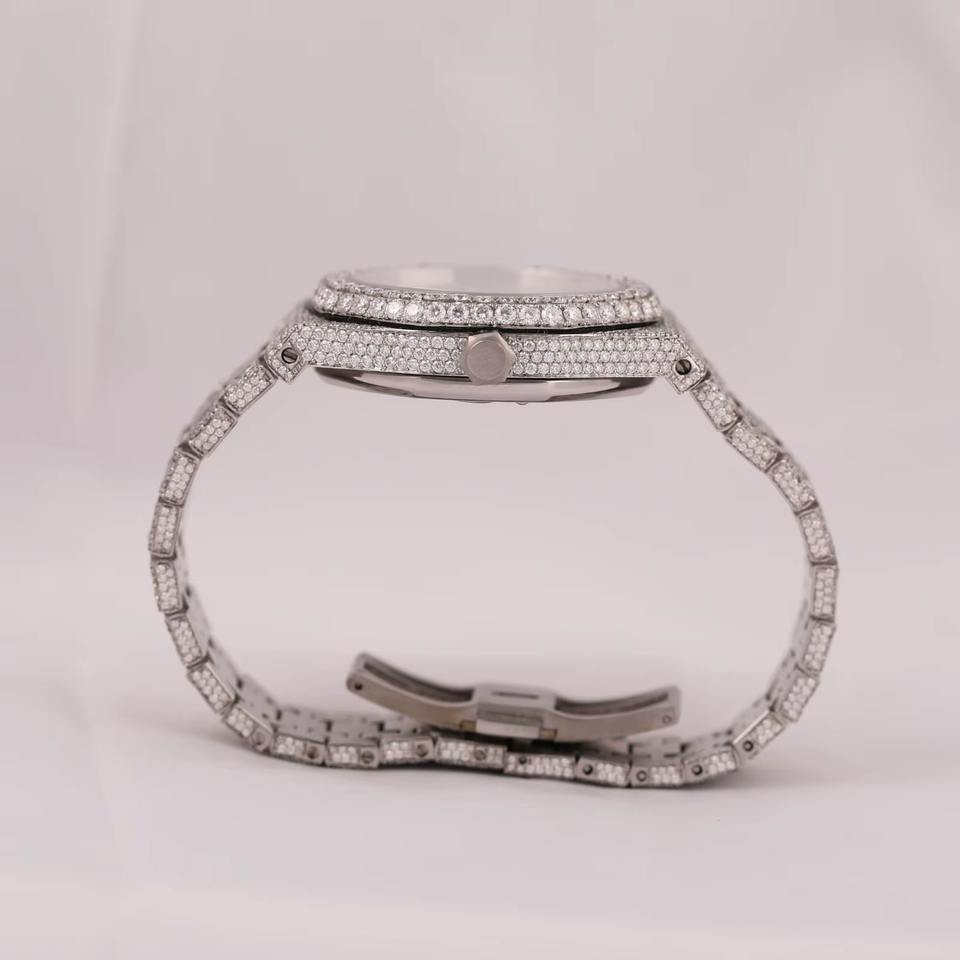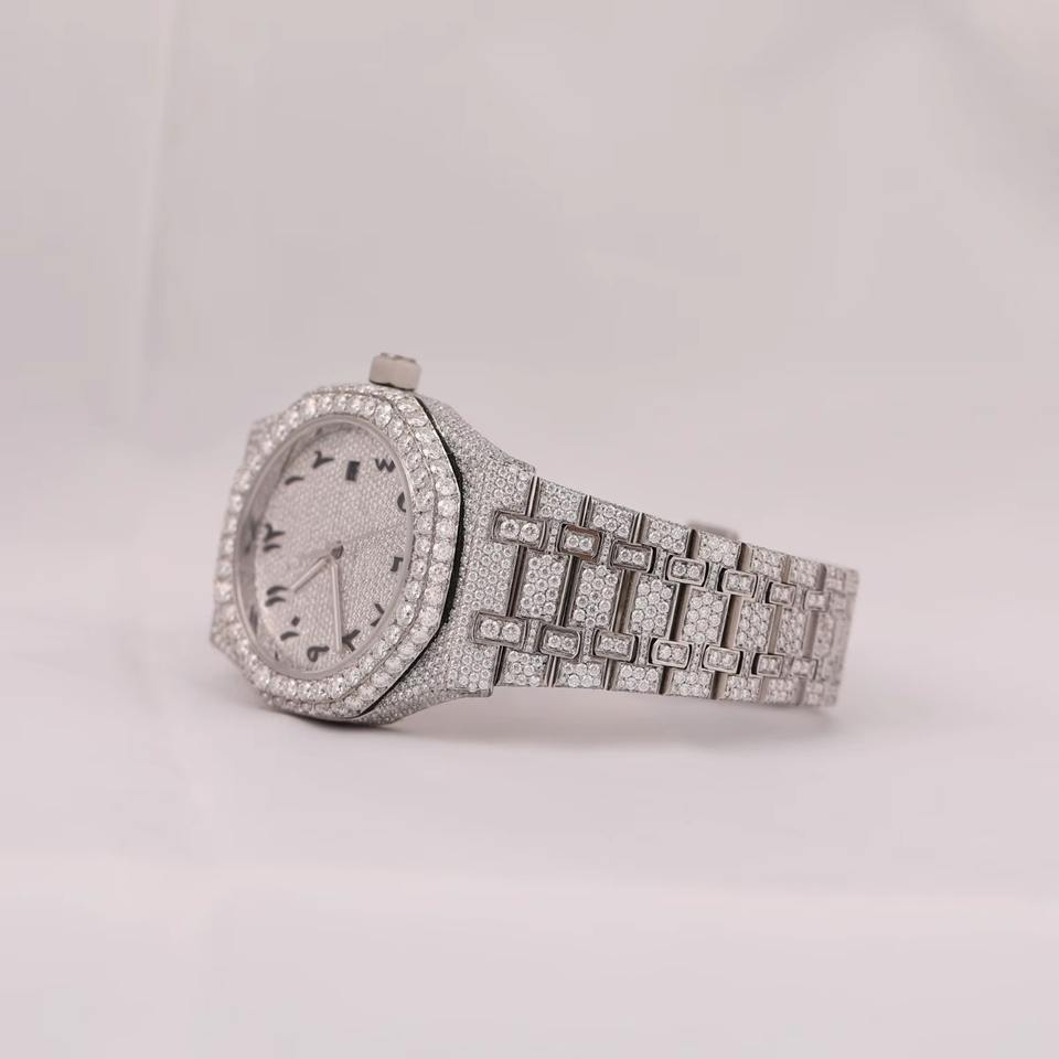 นาฬิกาเพชร VVS มอยส์ซาไนต์สุดหรูหรา ประดับเพชรเต็มเรือน ตัวเรือนสแตนเลสสตีล ระบบออโตเมติก ดีไซน์ทันสมัย