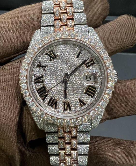 VVS Moissanite นาฬิกาเพชรสีโรสโกลด์เต็มรูปแบบสำหรับการเคลื่อนไหวอัตโนมัติน้ำแข็ง41มม. นาฬิกาควอทซ์แก้วโบราณ