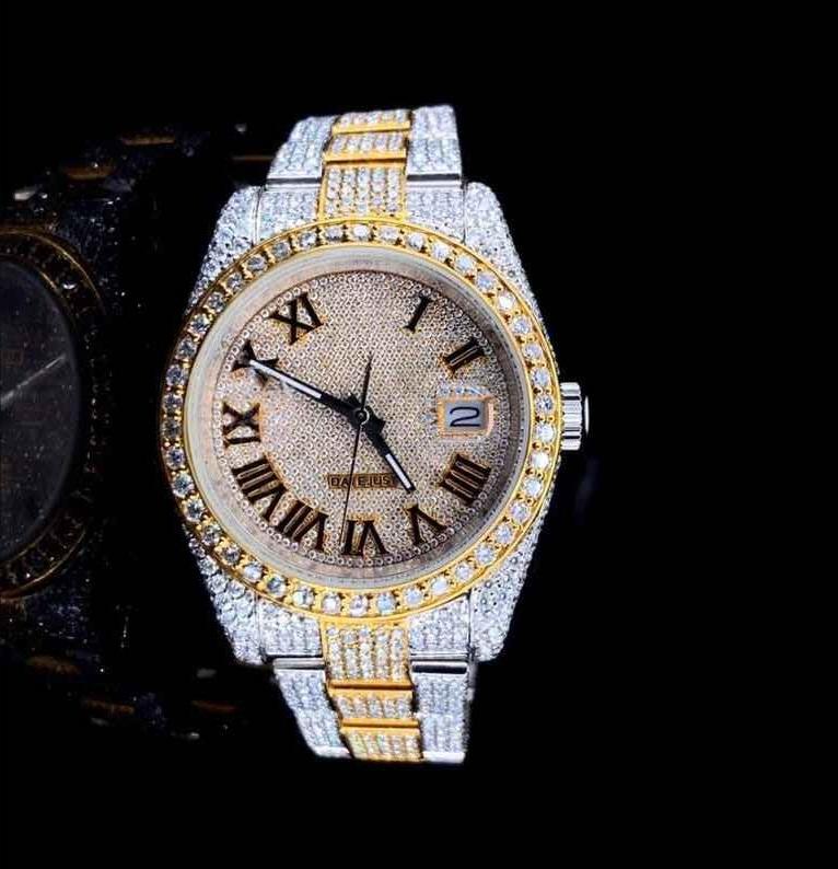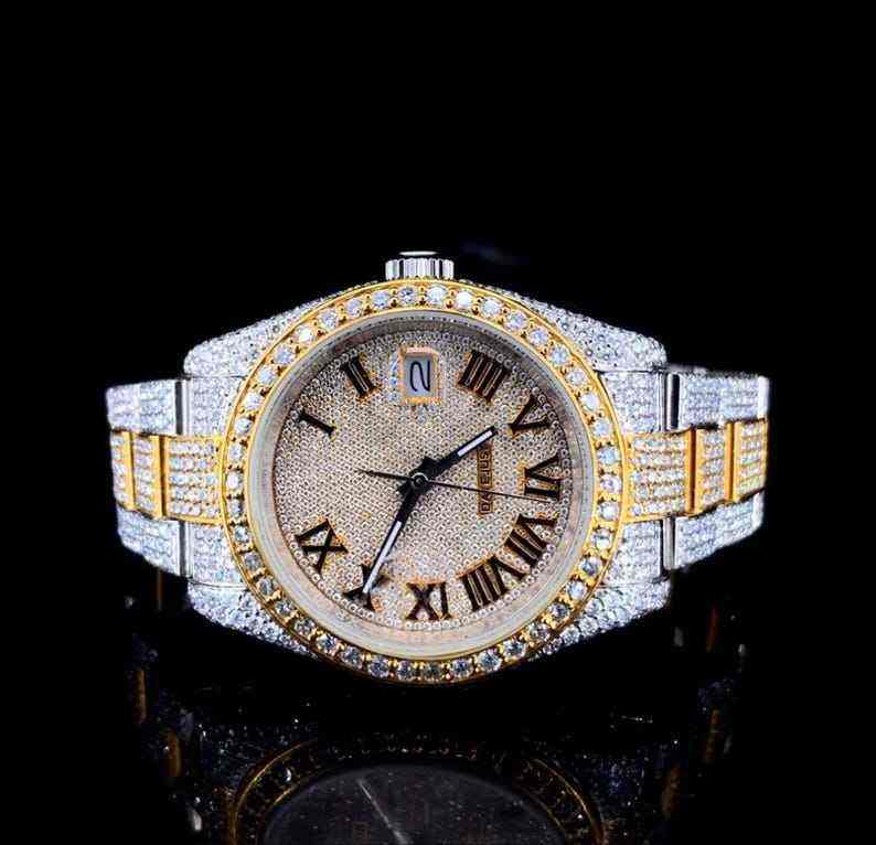 VVS Moissanite นาฬิกาข้อมือประดับเพชรที่ไม่ซ้ำกันเคสสแตนเลสหน้าปัดกระจกสี D สำหรับผู้ชาย