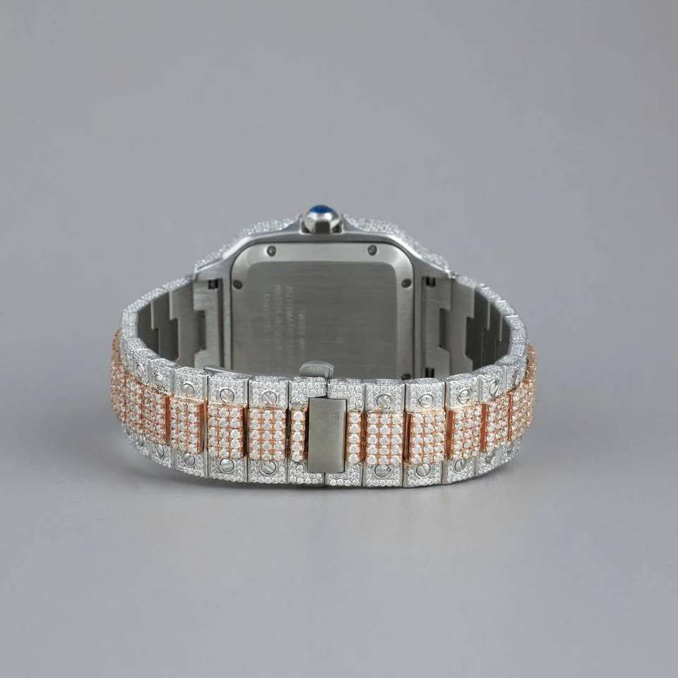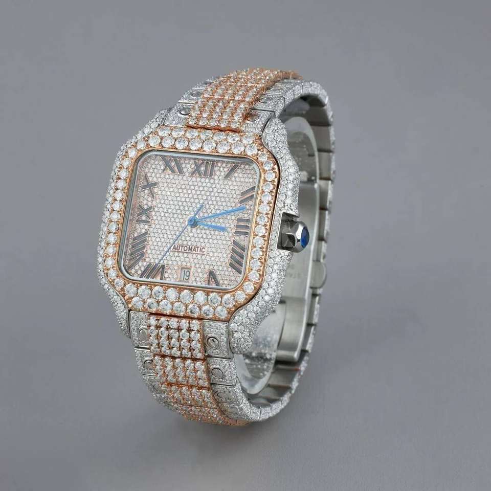 เพชรโมอิสซาไนต์ VVS ผ่านการทดสอบเครื่องตรวจสอบเพชร สี D แบบกำหนดเอง สายแบบฮิปฮอปสำหรับนักธุรกิจ ตัวเรือนสแตนเลสสตีล หน้าปัดกระจกทรงสี่เหลี่ยม ระบบควอตซ์