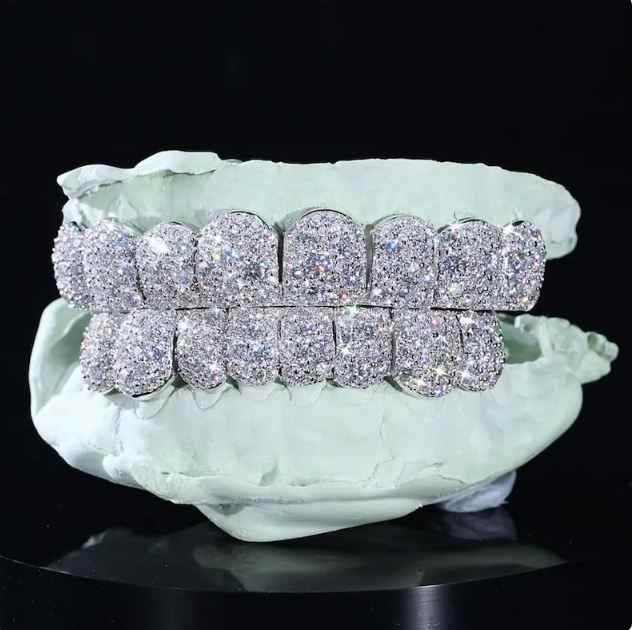 VVS Moissanite โรสโกลด์หรูหรา gillz 8x8ฟันเครื่องประดับ