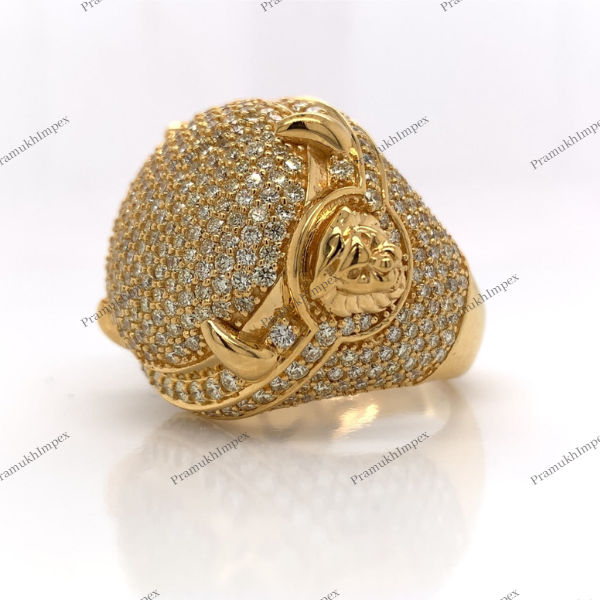 VVS Moissanite Trendy Collection Fully Iced Sterling Silver Yellow Gold Plated Prong Setting GRA Certified Perfect Hip Hop Ring
