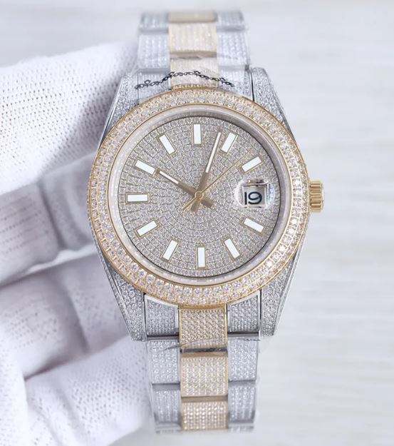 VVS Moissanite Watch, สีขาวทองอัตโนมัติหน้าอกลงเพชร, นาฬิกาข้อมือกล, นาฬิกาเพชรหรูหราเครื่องประดับฮิปฮอป