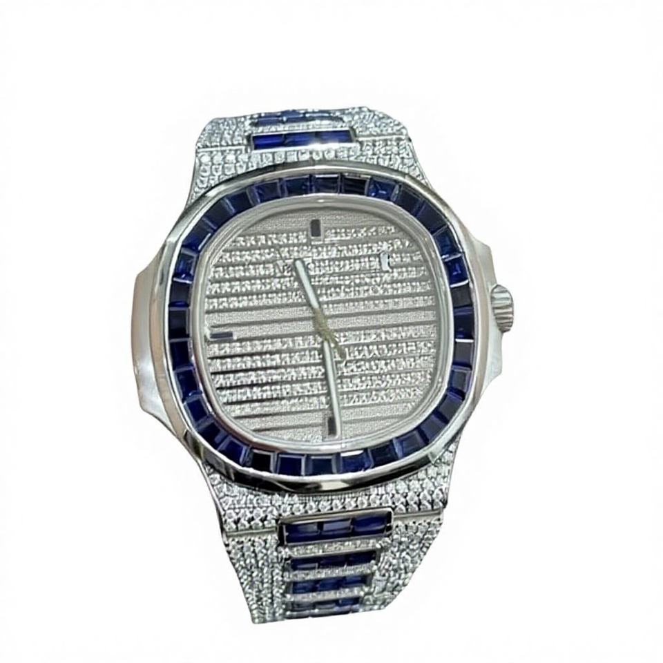 VVS Moissanite White Baguettes Sapphire Stainless Steel Round Case Bracelet Clasp 10 Bar Water Resistant