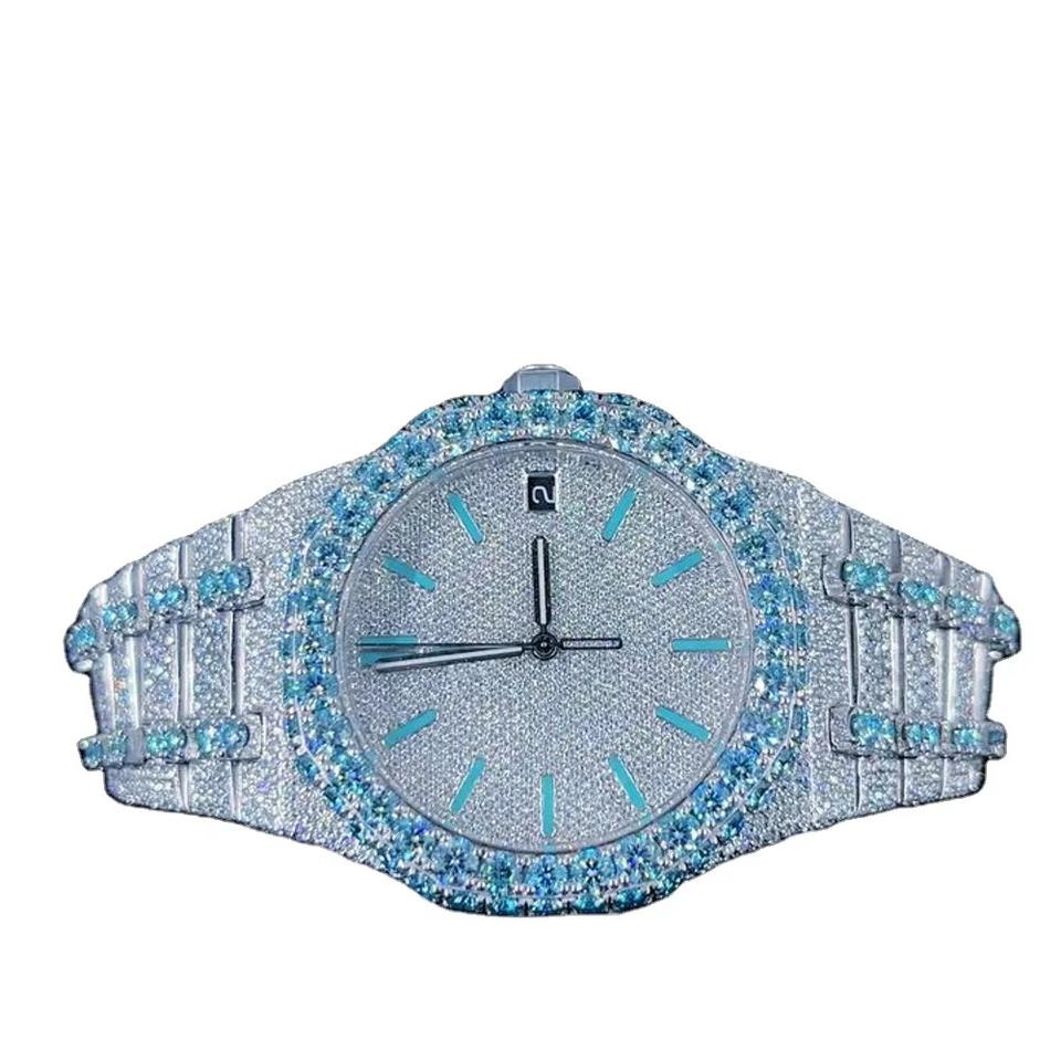 นาฬิกาเพชร VVS มอยส์ซาไนต์ทรงกลมสีขาวสำหรับผู้ชาย ของขวัญสุดหรูสไตล์ฮิปฮอป คอลเลคชั่นแฟนซี ตัวเรือนสแตนเลสสตีล ระดับความสะอาด VVS1