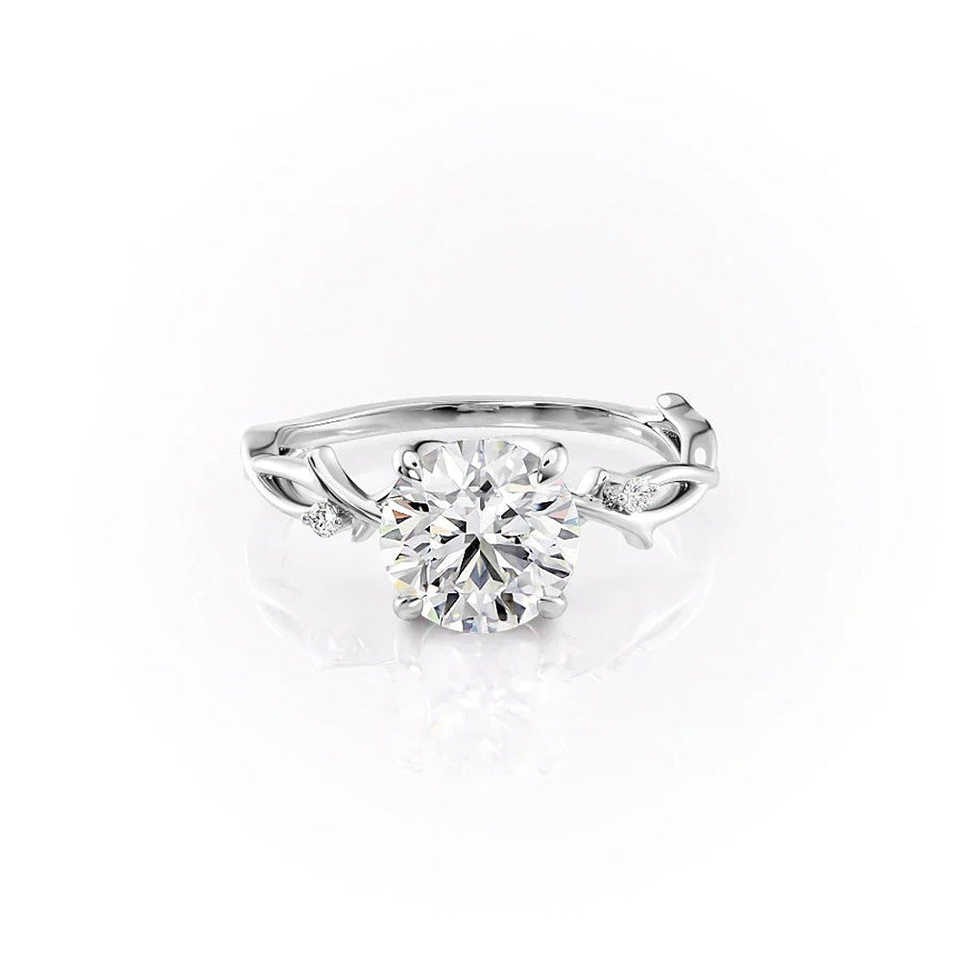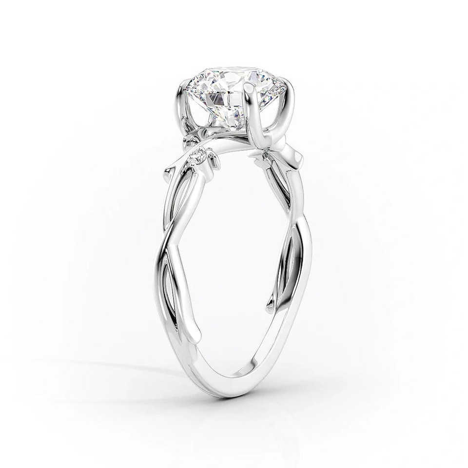 แหวนหมั้นเพชรโมอิสทรงกลมตัดเป็นเอกลักษณ์พร้อมแหวนเพชรโมอิสใส VVS1