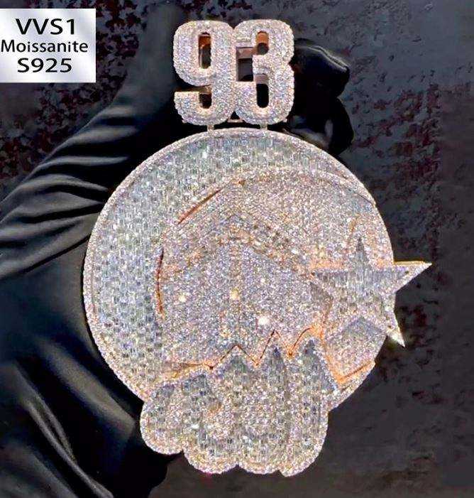 จี้ดาวพระจันทร์ประดับเพชรโมอิสซาไนต์ VVS1 แบบฮิปฮอป เครื่องประดับเงินแท้ S925 ชุบทอง 18K หรูหรา สั่งทำพิเศษ ขนาด 3x3 มม.