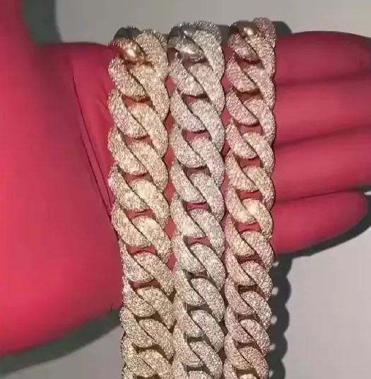 สร้อยคอโมอิสซาไนต์ VVS1 แบบเทนนิสเชน เงินแท้ 925 ชุบทอง/เงิน/โรสโกลด์ สไตล์ฮิปฮอป ทรงปรินเซสคัท รับรองโดย IGI