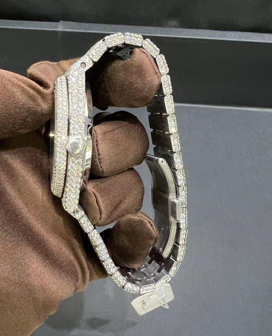 นาฬิกาควอทซ์เพชรโมอิส VVS1สีขาวทองเพชรสายนาฬิกาโลหะผสมหน้าปัดกระจกแบบเต็มหน้า