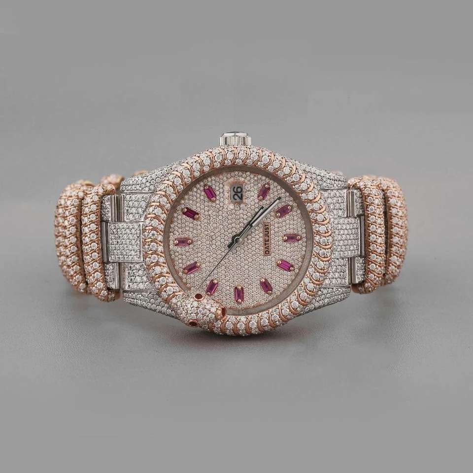 นาฬิกาดีไซน์หัวกะโหลกแก้วคุณภาพสูง ประดับเพชรโมอิสซาไนต์ VVs Clarity พร้อมเพชรทรงกลมเจียระไนแบบบริลเลียนท์ สำหรับทั้งชายและหญิง