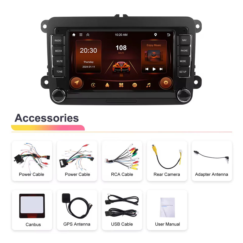 เครื่องเสียงสเตอริโอติดรถยนต์โดยเฉพาะกลุ่ม VW podofo 7นิ้ว Android CarPlay ไร้สาย Android Auto GPS WiFi FM RDS