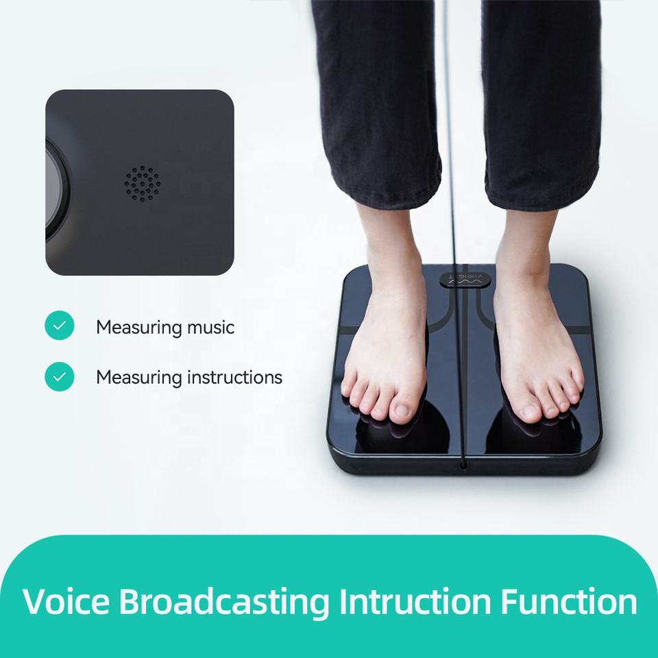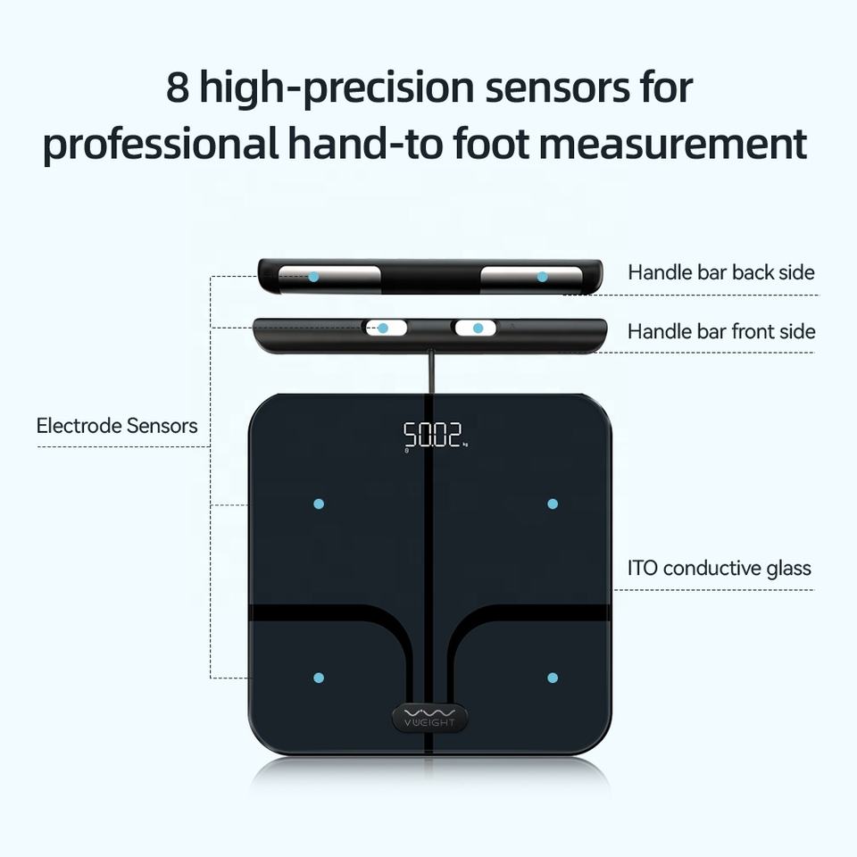 เครื่องชั่งน้ำหนักดิจิตอล VWEIGHT แบบกระจกนิรภัย รองรับน้ำหนักได้ถึง 180 กก. วัดค่า BMI ไขมันในร่างกายด้วยอิเล็กโทรด 8 จุด พร้อมแอปพลิเคชันวัดมวลกล้ามเนื้อ