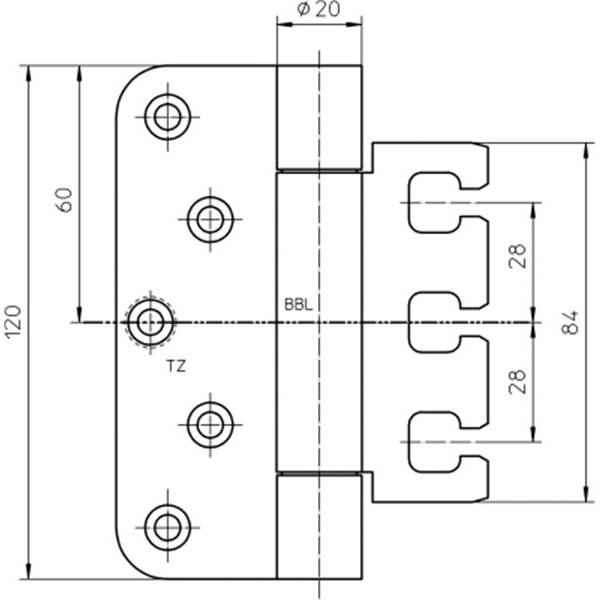 ศิลปะเหล็กชุบสังกะสีบานพับ 'T' ไฟ121/150สำหรับประตูและหน้าต่าง