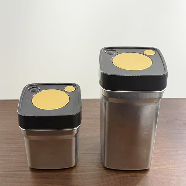 กระป๋องสุญญากาศสแตนเลสสี่เหลี่ยมสำหรับเก็บเมล็ดกาแฟ Vacare 2025 ทนทาน ป้องกันการกัดกร่อน ปิดผนึกแน่น พร้อมวาล์ว CO2 ทางเดียว สีปรับแต่งได้