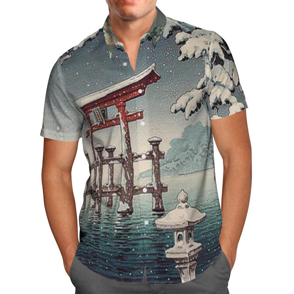Vacation Hawaiian Shirt All Over Logo Short Sleeve Shirt for Camp Running Sports Custom Printed Hawaiian Button up Shirt for Men