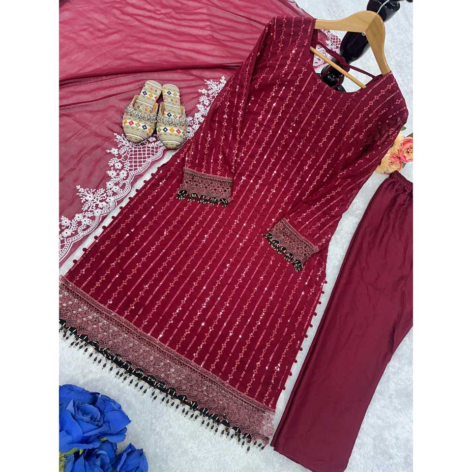 วาลัมแฟชั่นชุดปาร์ตี้สีแดงสวยสำหรับผู้หญิงชุดแฟนซี dupatta แฟนซีชุดไซส์ L