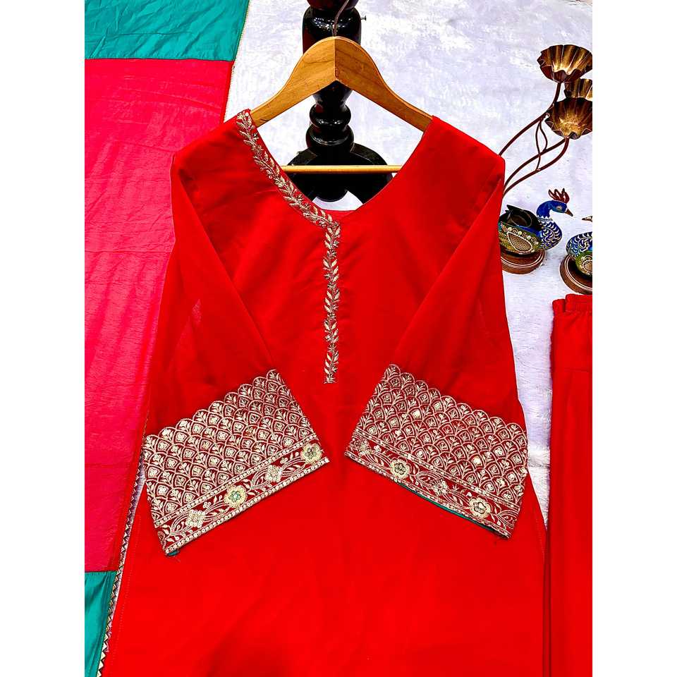 ชุดเสื้อและกางเกงสีแดงสวยงามสำหรับผู้หญิงจาก Valam Fashion พร้อมผ้าคลุมไหล่ดีไซน์เนอร์ เหมาะสำหรับงานปาร์ตี้ งานทางการ และโอกาสทั่วไป