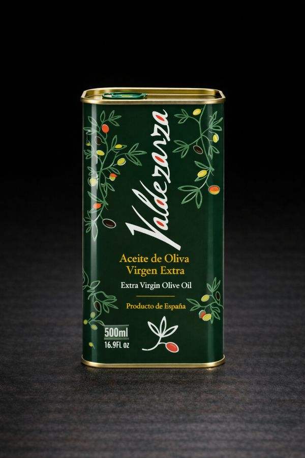 น้ำมันมะกอกบริสุทธิ์พิเศษออร์แกนิค วาลด์เซราซ่า พรีเมียม 500 มล. บรรจุกระป๋องโลหะ สกัดเย็น ผลิตในสเปน ไม่ผ่านการกลั่น รสผลไม้ รสขม รสเผ็ด