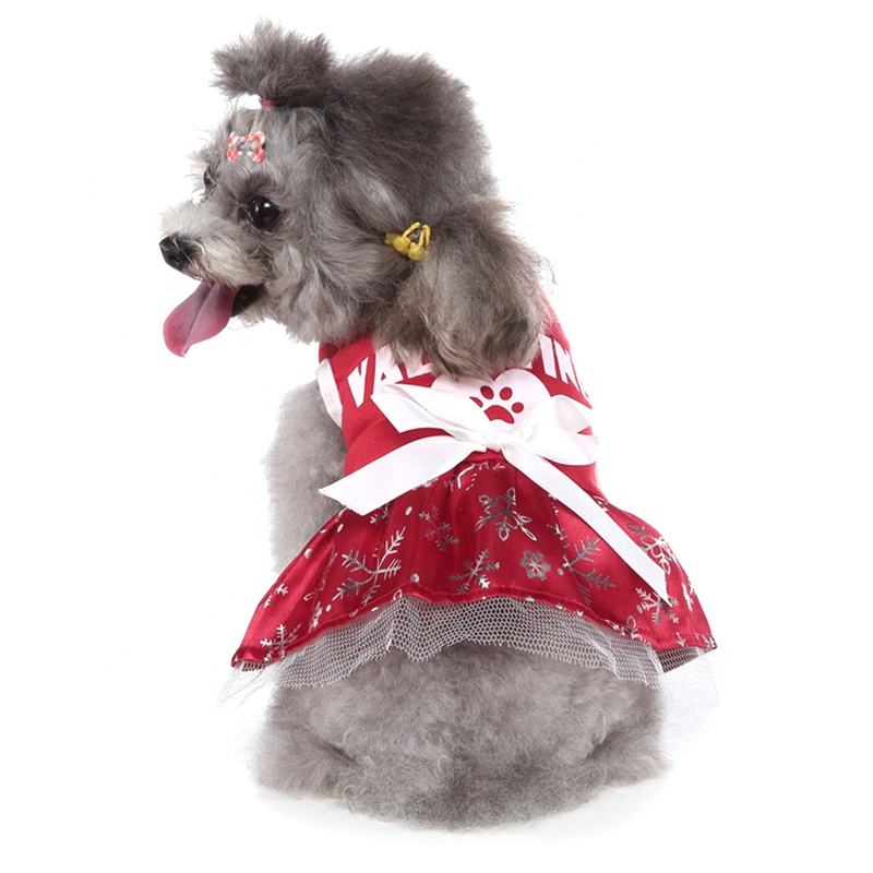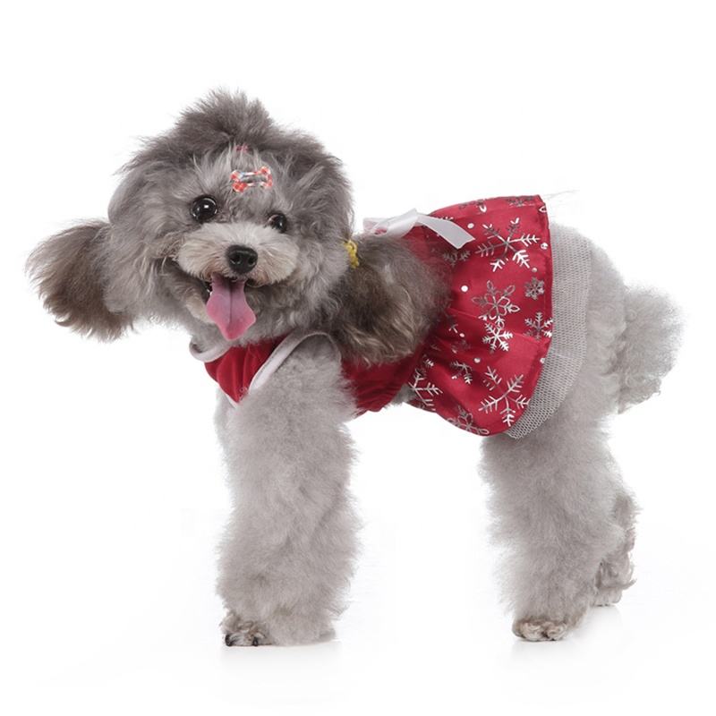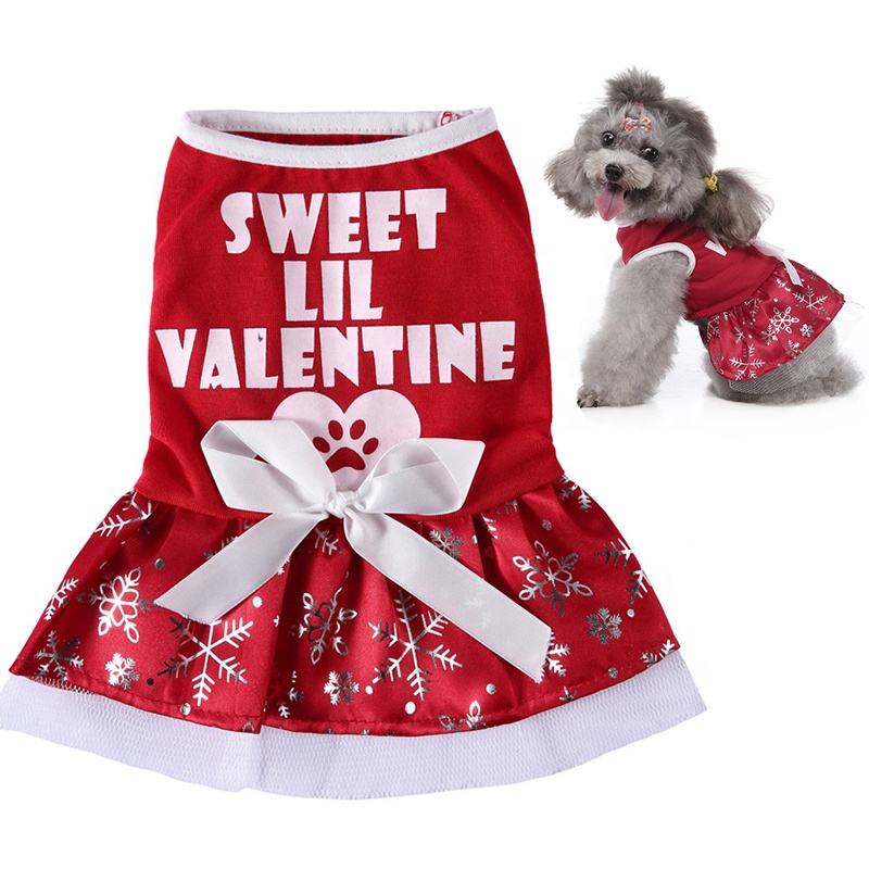 ชุดวาเลนไทน์สำหรับสุนัข-สีแดง 'สวีท ลิล วาเลนไทน์' ชุดวันหยุดลายเกล็ดหิมะ โพลีเอสเตอร์ ชุดน่ารักสำหรับสุนัข