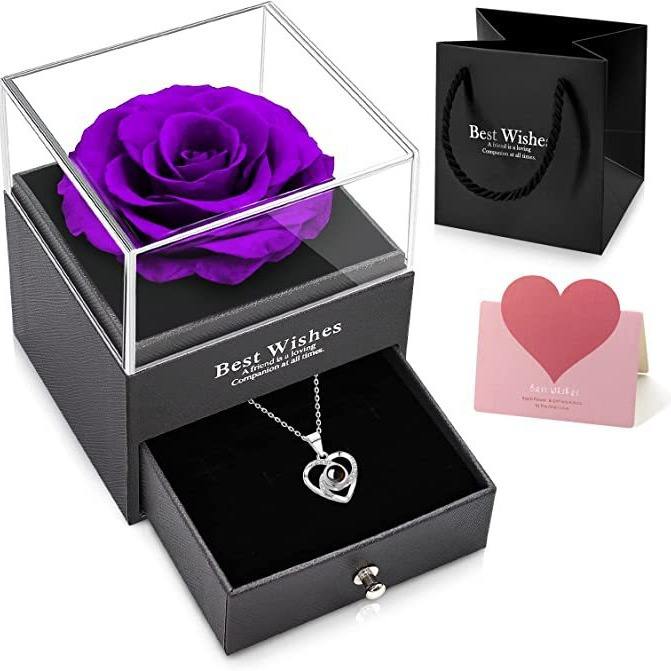 ของขวัญวันวาเลนไทน์ดอกไม้ที่เก็บรักษาไว้เป็นนิรันดร์เพิ่มกล่องเครื่องประดับอะคริลิกของขวัญกุหลาบตลอดกาล