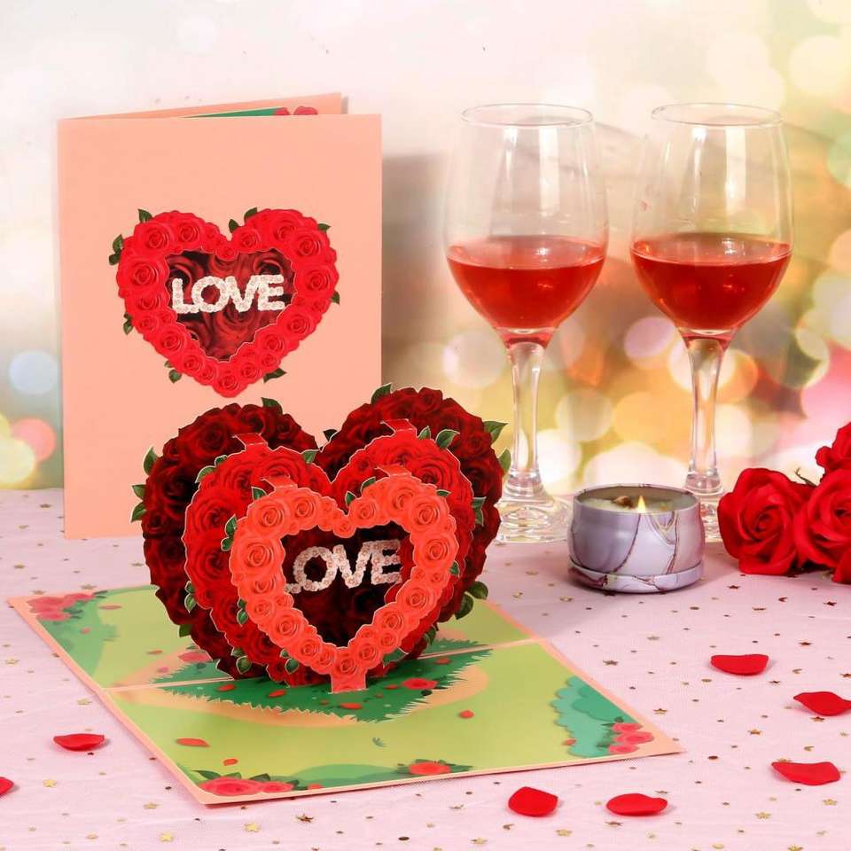 การ์ดอวยพรวาเลนไทน์ ดีไซน์รูปหัวใจกุหลาบใหม่ ดีไซน์โรแมนติก พร้อมซอง 3 มิติ แบบป๊อปอัพ พับได้