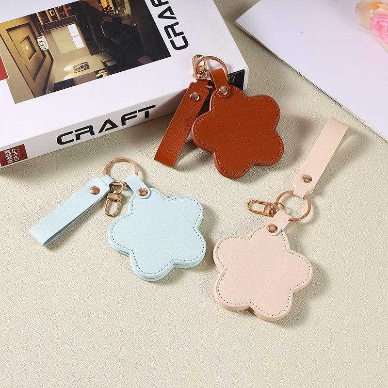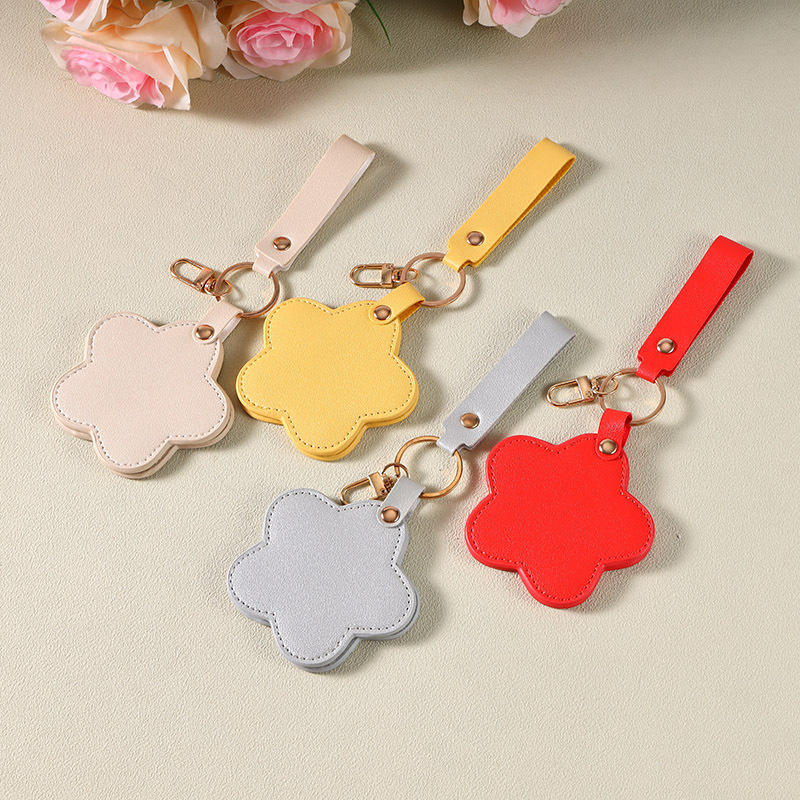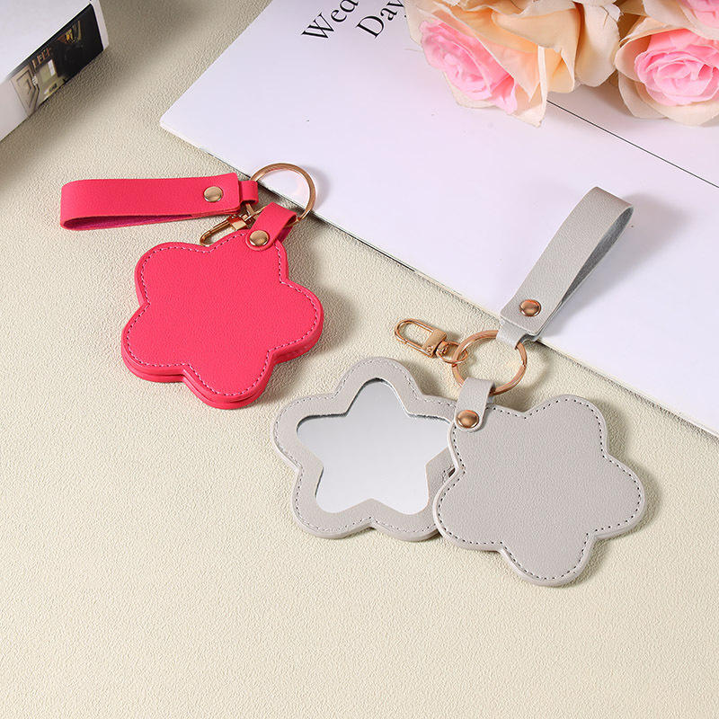Valentine's Day Gift Star Shaped Makeup Keychain Mirror Pu Leather HD Glass Custom Travel Pocket Mirrors Women Girls Magnifying