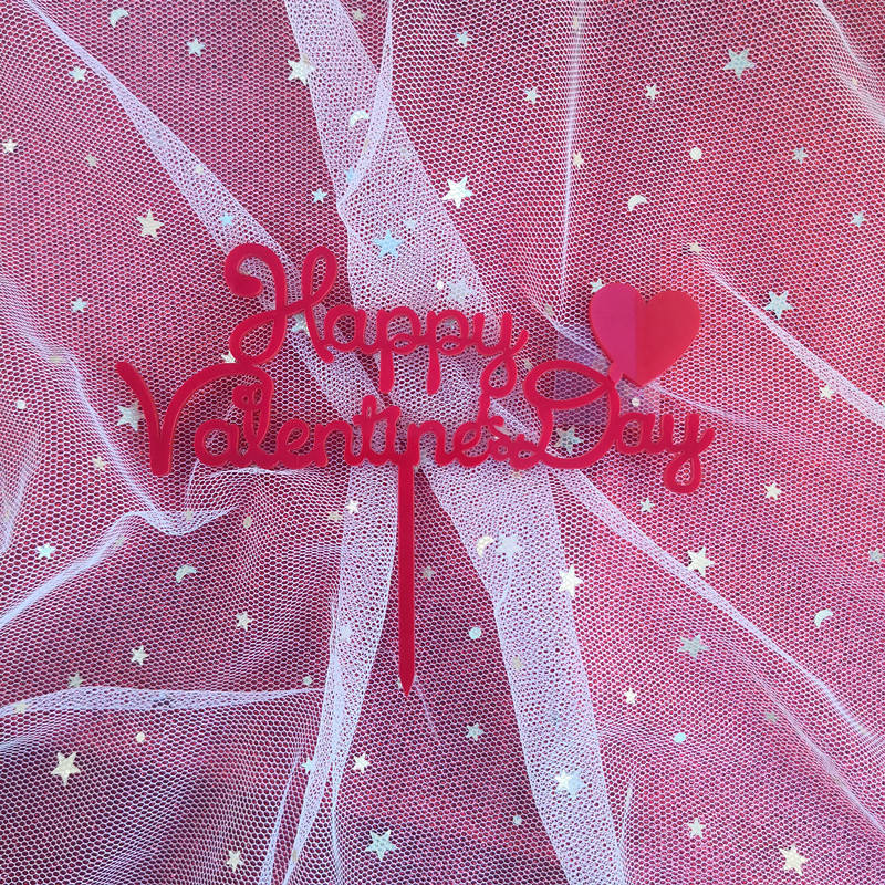 ป้ายอะคริลิคเค้กวันวาเลนไทน์ ลายดอกกุหลาบ สุขสันต์วันวาเลนไทน์ ตกแต่งเค้กอะคริลิคแห่งความรัก