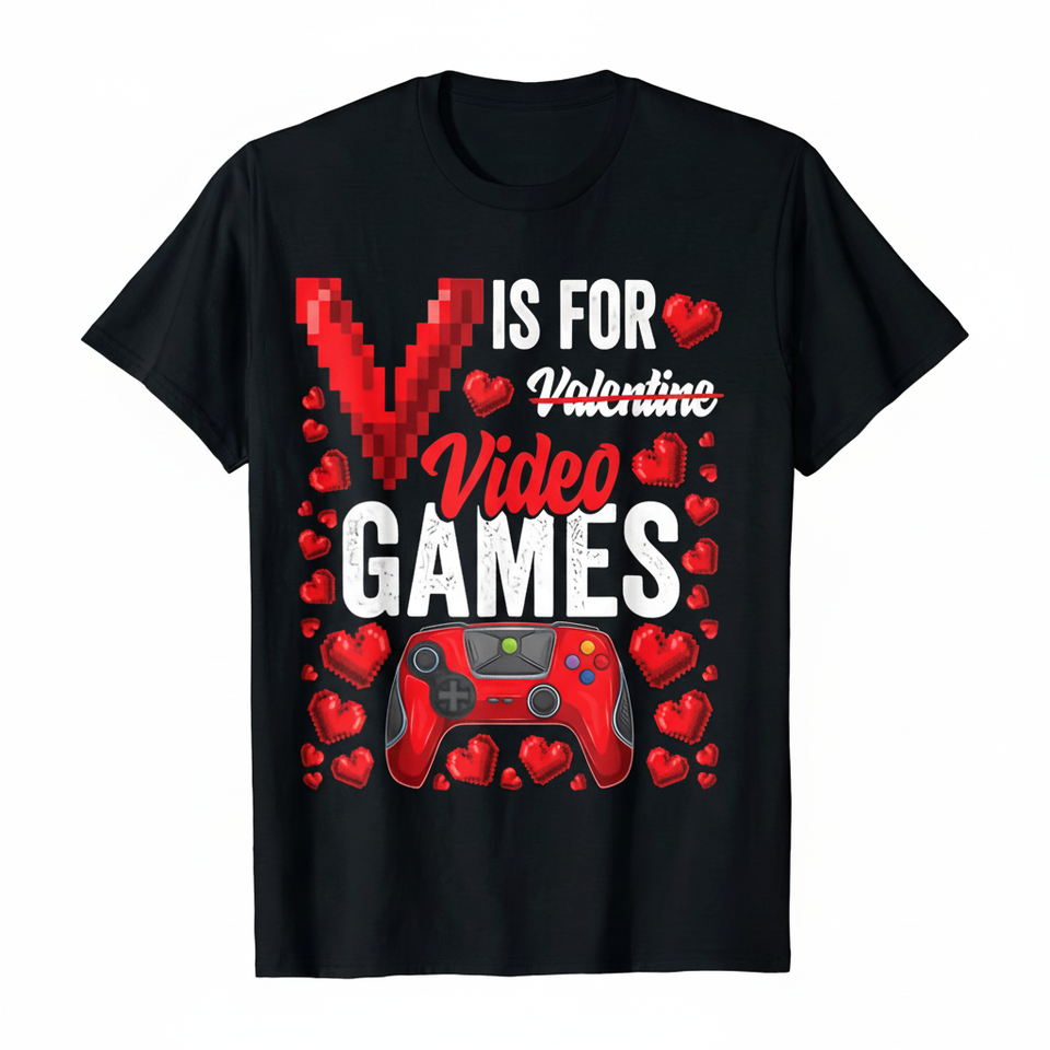 เสื้อยืดลายกราฟิกวิดีโอเกมวันวาเลนไทน์สำหรับผู้ชาย ผ้าฝ้าย 100% ทรงปกติ แขนสั้น คอกลม พิมพ์ลายด้วยความร้อน ของขวัญลำลอง