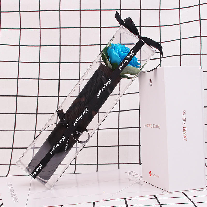 สบู่ดอกไม้รูปดอกกุหลาบและดอกคาร์เนชั่นในกล่องพีวีซีทรงสี่เหลี่ยมสำหรับวันวาเลนไทน์