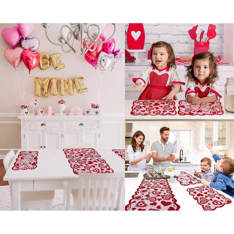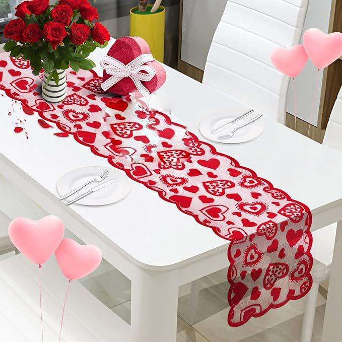 ผ้าปูโต๊ะลายลูกไม้รูปหัวใจสำหรับวันวาเลนไทน์ ขนาด 13 x 72 นิ้ว ผลิตจากโพลีเอสเตอร์ 100% สำหรับทุกเพศ ผลิตในจีน เหมาะสำหรับงานแต่งงานและงานปาร์ตี้
