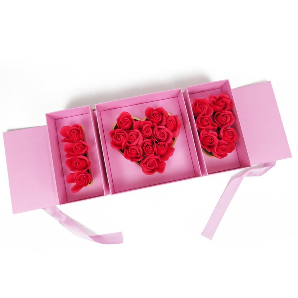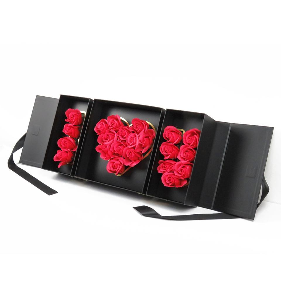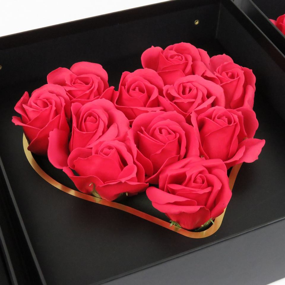 กล่องของขวัญวาเลนไทน์ ฉันรักคุณ พร้อมจัดดอกกุหลาบในกล่องกระดาษแข็งสุดหรู สำหรับวันแม่