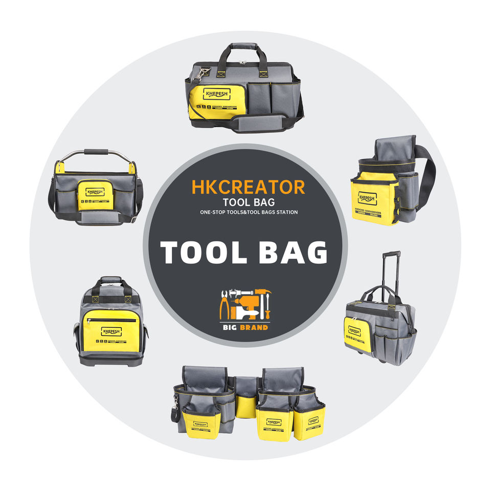 กระเป๋าเครื่องมืองานประปาสีเหลืองชุด12 24นิ้ว14ช่องสำหรับช่างไฟก่อสร้างงานช่างไม้ปรับแต่งได้